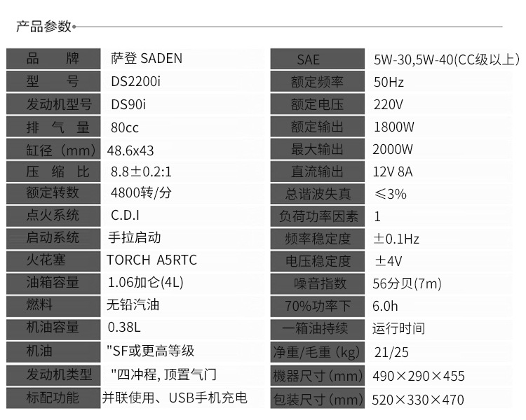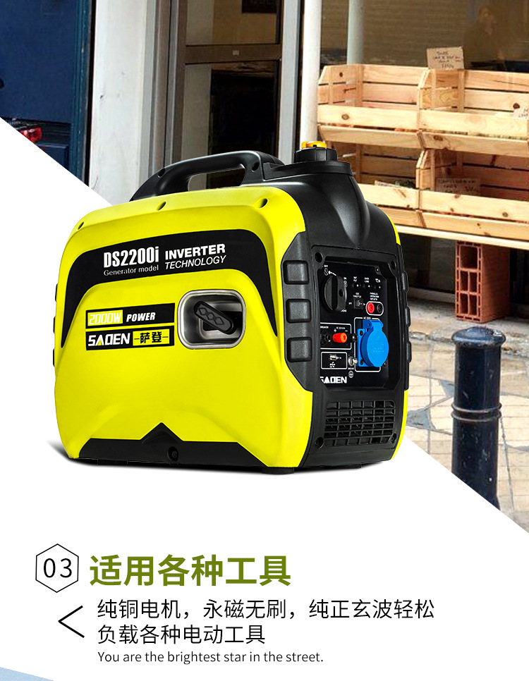 薩登小型發電機220v家用小型2KW靜音戶外房車手提便攜式2千瓦變頻